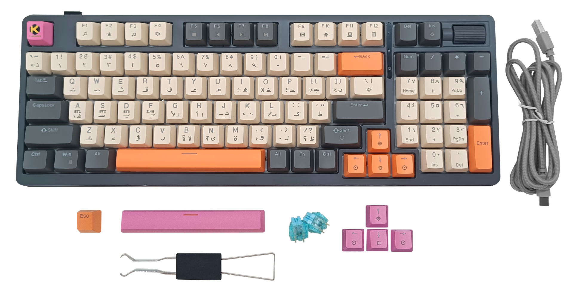 The K-Gaming Arctic Rift C-MKB96 Tri-Mode Gaming Keyboard offers unmatched versatility with wired, Bluetooth, and 2.4GHz connectivity. This 96-key mechanical keyboard features hot-swap switches, a durable Type-C interface, and a powerful 4000mAh internal battery for extended use.